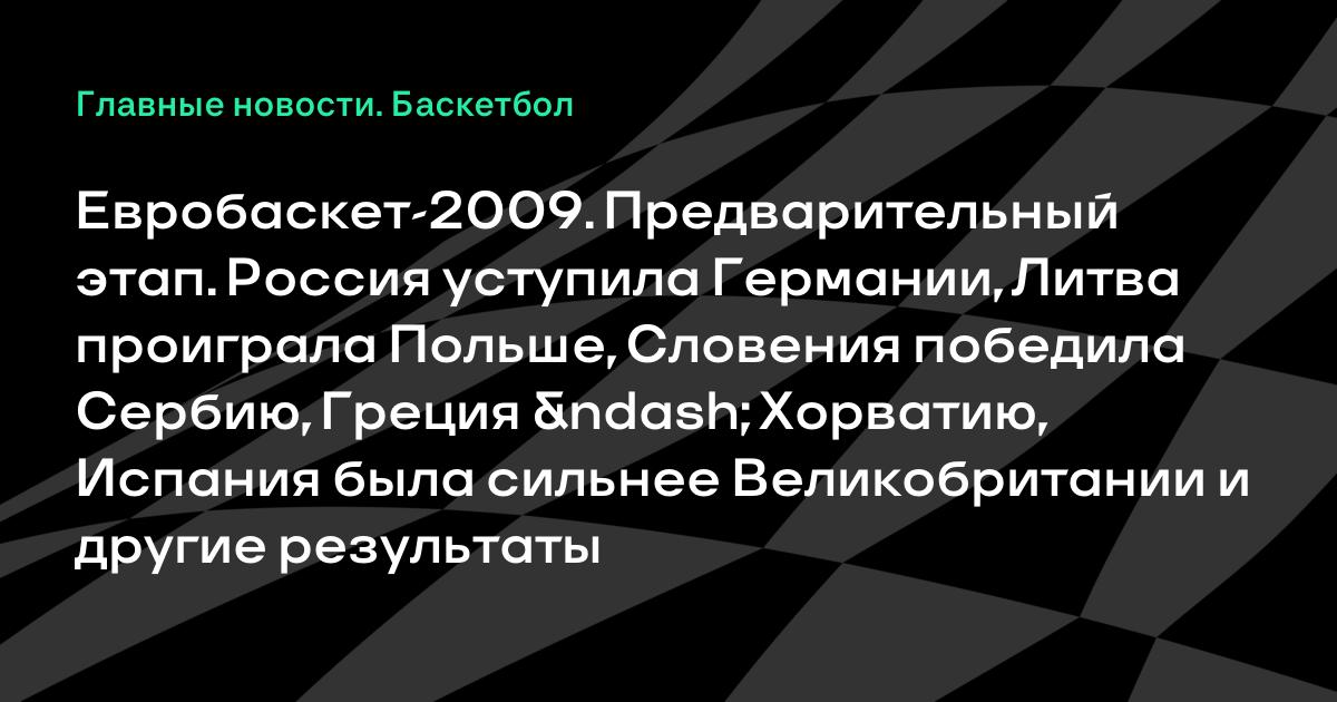 Евробаскет-2009. Предварительный этап. Россия уступила Германии, Литва проиграла Польше, Словения победила Сербию, Греция – Хорватию, Испания была сильнее Великобритании и другие результаты