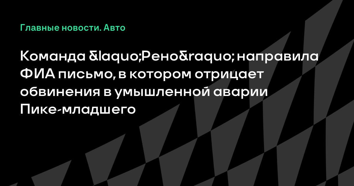 Команда «Рено» направила ФИА письмо, в котором отрицает обвинения в умышленной аварии Пике-младшего
