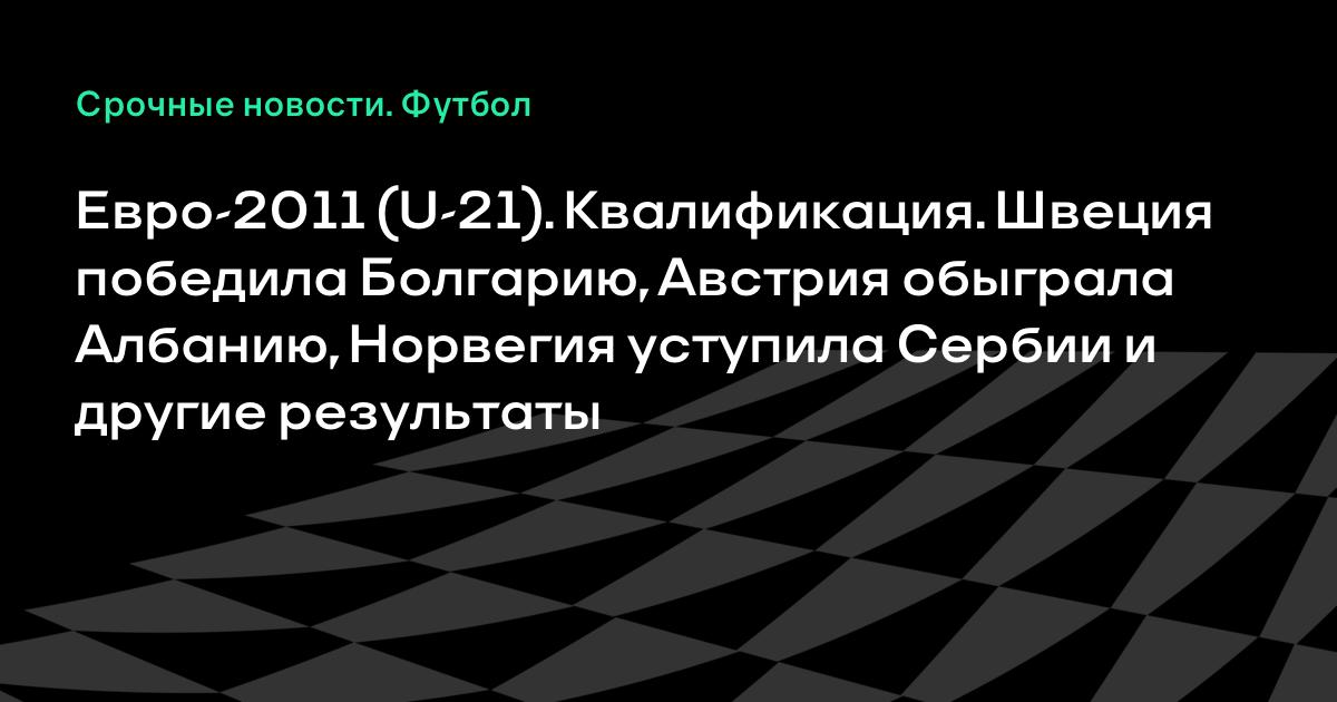 Евро-2011 (U-21). Квалификация. Швеция победила Болгарию, Австрия обыграла Албанию, Норвегия уступила Сербии и другие результаты