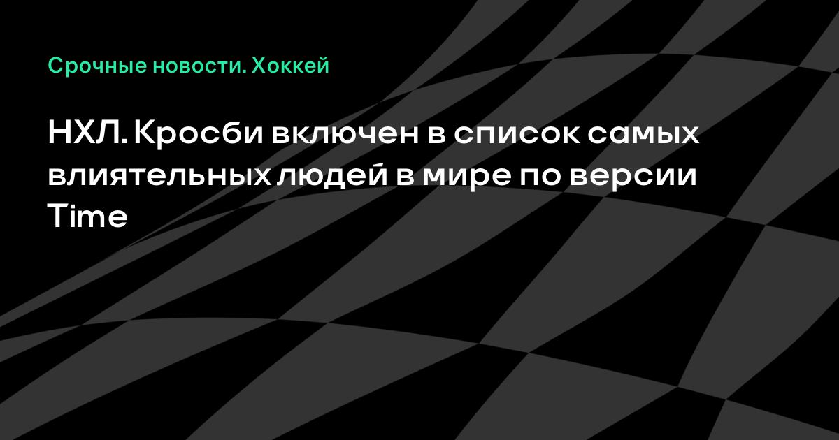 Известный журнал Time включил нападающего «Питтсбурга» Сидни Кросби в число кандидатов в список 100 самых влиятельных людей в мире. Кросби самый молодой спортсмен, завоевавший трофей в одной из профессиональных лиг Северной Америки. На данный момент он занимает в голосовании четвертое место, уступая лишь комику Стивену Колберту, создателю компьютерных игр Шигеру Миямото и автору «Гарри Поттера» Джоан Роулинг, пишет «Спорт-Экспресс».