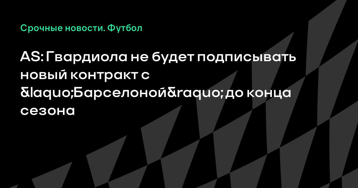 Главный тренер «Барселоны» Хосеп Гвардиола не будет подписывать новый контракт с клубом до конца этого сезона. По информации AS, специалист начнет вести переговоры с руководством сине-гранатовых только летом следующего года.
