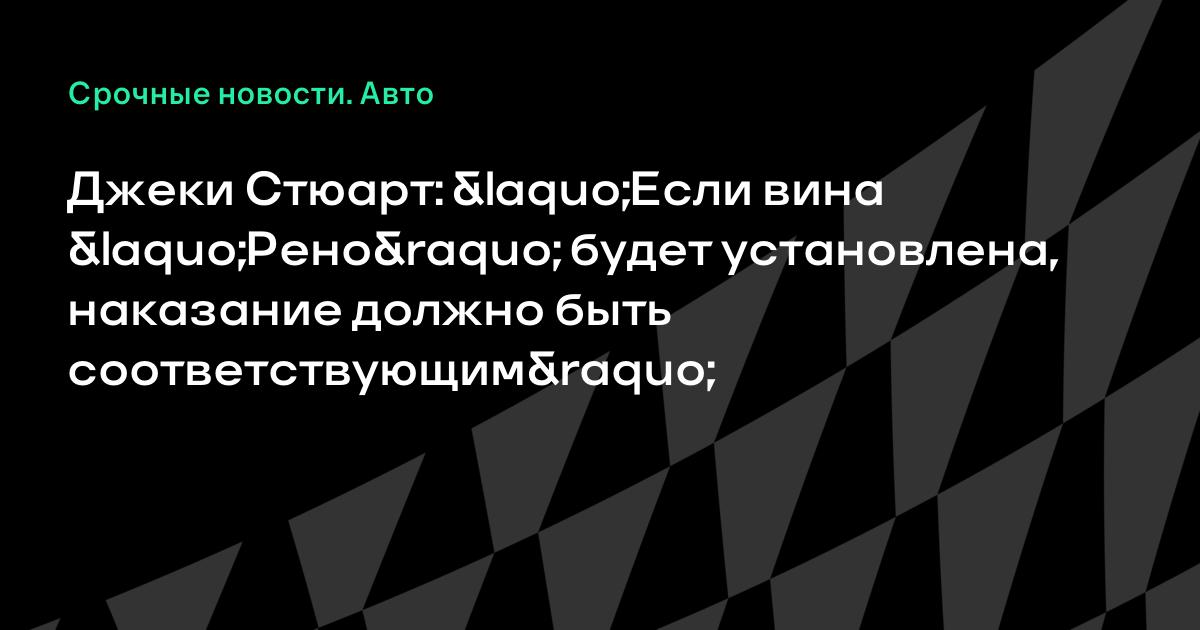 Джеки Стюарт: «Если вина «Рено» будет установлена, наказание должно быть соответствующим»