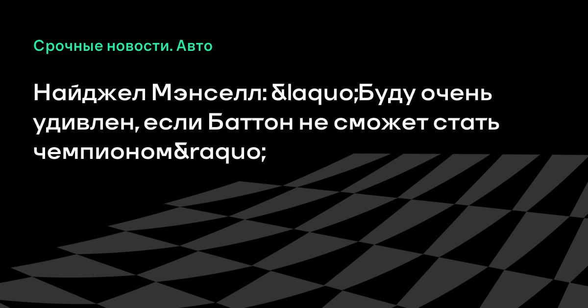 Я буду очень удивлен, если он не сможет стать чемпионом. За пять гонок до завершения чемпионата все, что ему нужно сделать финишировать. В последней паре гонок Рубенс держал над ним верх, но лидерство Дженсона все равно надежно. Главное держаться подальше от неприятностей и финишировать. У Уэббера и Феттеля тоже не все получается. Баттону нужно просто сосредоточиться, и все с ним будет в порядке», цитирует Мэнселла Telegraph.