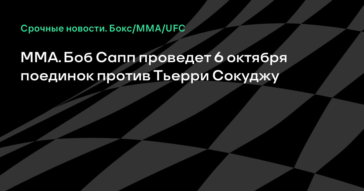MMA. Боб Сапп проведет 6 октября поединок против Тьерри Сокуджу