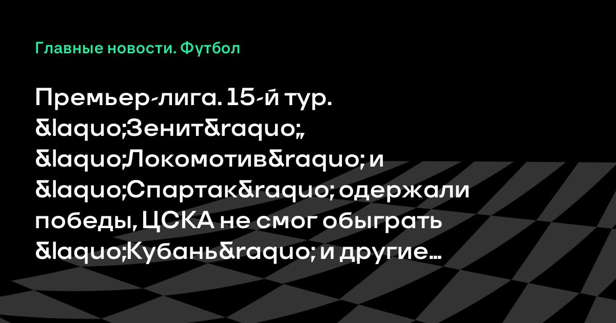 Премьер-лига. 15-й тур. «Зенит», «Локомотив» и «Спартак» одержали победы, ЦСКА не смог обыграть «Кубань» и другие результаты