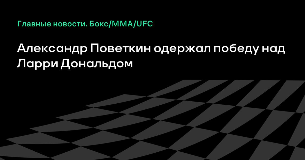 Александр Поветкин одержал победу по очкам в рейтинговом бою в супертяжелом весе по версии WBC над американцем Ларри Дональдом 100:90, 100:90, 100:90. Поединок прошел в субботу в московском спорткомплексе «Олимпийский».
