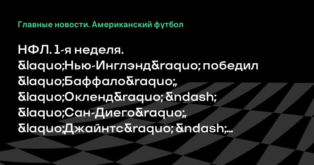 НФЛ. 1-я неделя. «Нью-Инглэнд» победил «Баффало», «Окленд» – «Сан-Диего», «Джайнтс» – «Вашингтон» и другие результаты