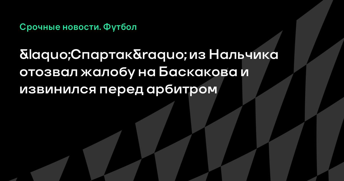 «Спартак» из Нальчика отозвал жалобу на Баскакова и извинился перед арбитром