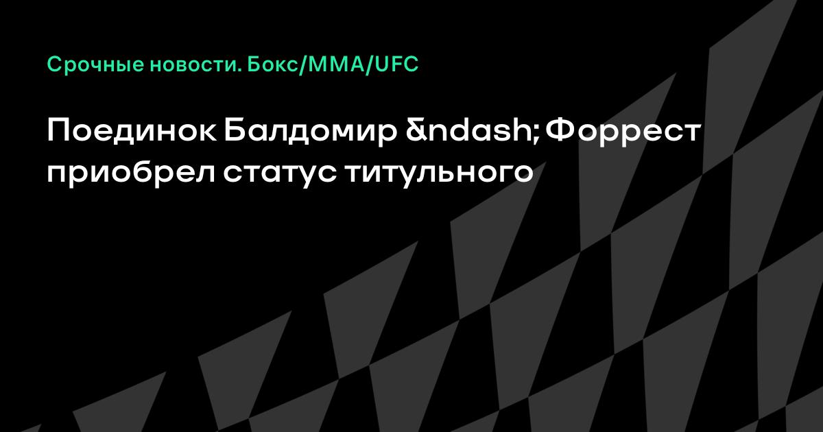 Сегодня стало известно, что поединок 28 июля за право оспаривать этот титул между Карлосом Балдомиром и Верноном Форрестом приобрел чемпионский статус, передает Fightnews.
