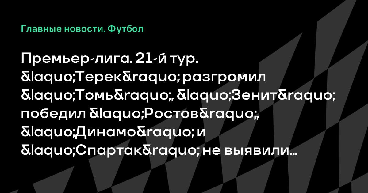 Премьер-лига. 21-й тур. «Терек» разгромил «Томь», «Зенит» победил «Ростов», «Динамо» и «Спартак» не выявили победителя, «Локомотив» одолел «Спартак» из Нальчика и другие матчи