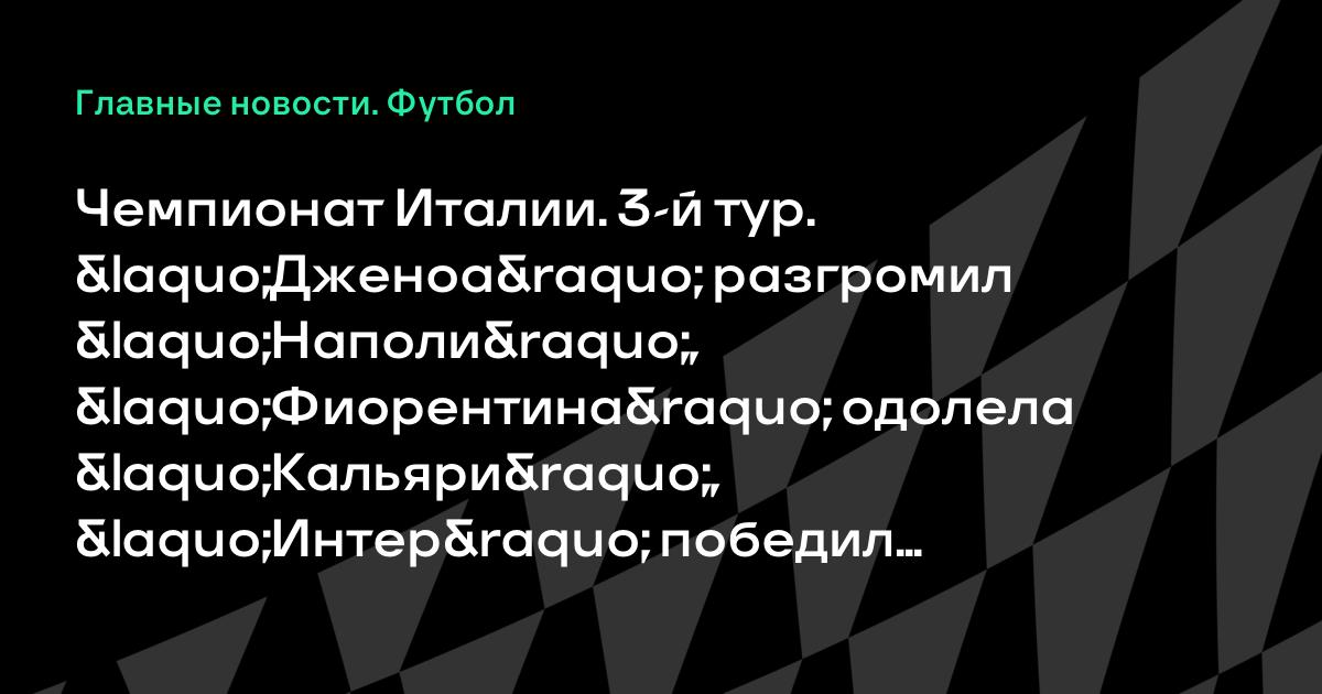 Чемпионат Италии. 3-й тур. «Дженоа» разгромил «Наполи», «Фиорентина» одолела «Кальяри», «Интер» победил «Парму» и другие результаты