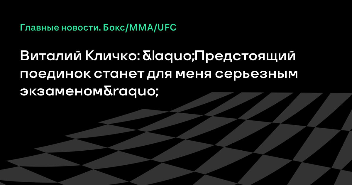 Виталий Кличко: «Предстоящий поединок станет для меня серьезным экзаменом»