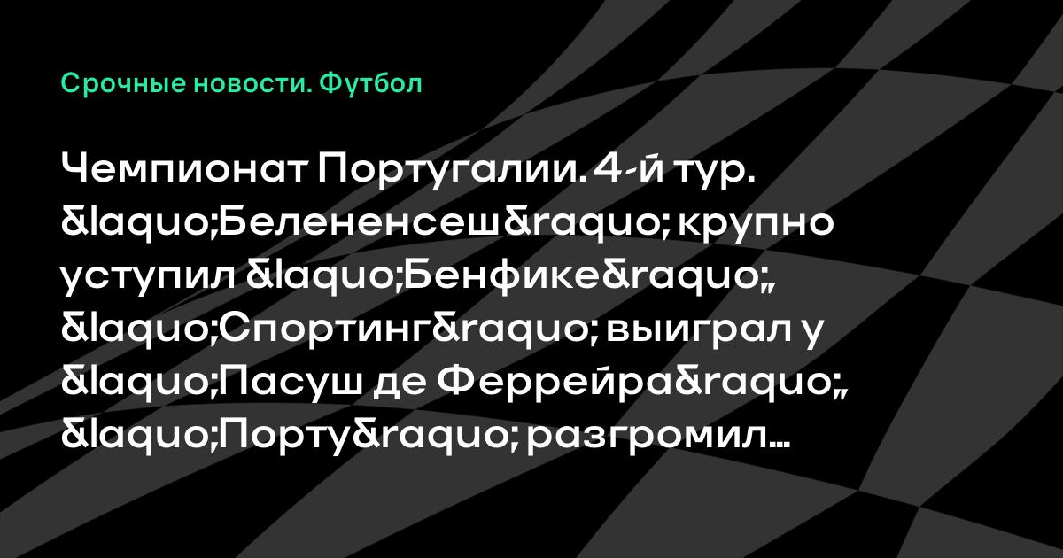 Чемпионат Португалии. 4-й тур. «Белененсеш» крупно уступил «Бенфике», «Спортинг» выиграл у «Пасуш де Феррейра», «Порту» разгромил «Лейшоэш»