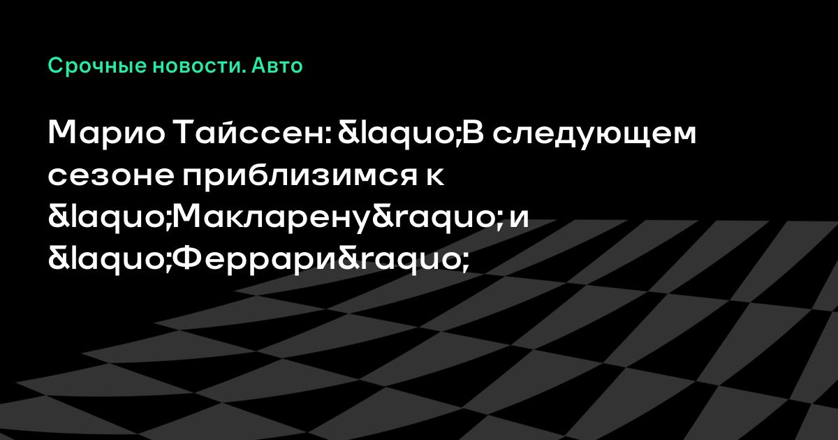 Марио Тайссен: «В следующем сезоне приблизимся к «Макларену» и «Феррари»