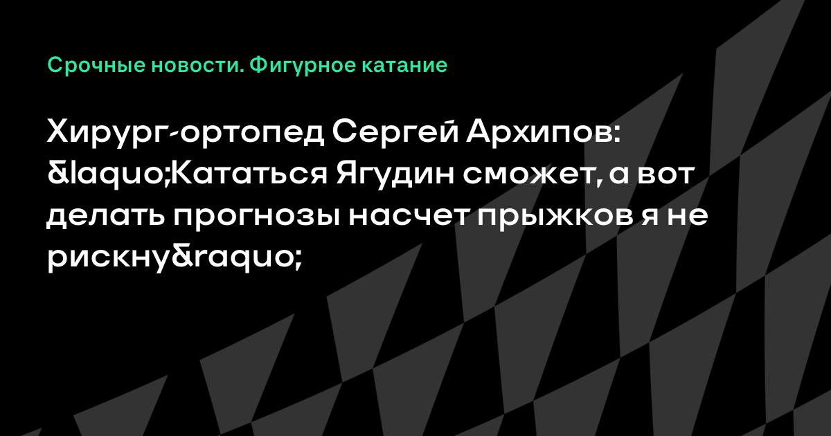 Хирург-ортопед, доктор медицинских наук Сергей Архипов дал свой прогноз относительно спортивных перспектив российского фигуриста Алексея Ягудина, вернувшегося в любительский спорт после операции на тазобедренном суставе.
