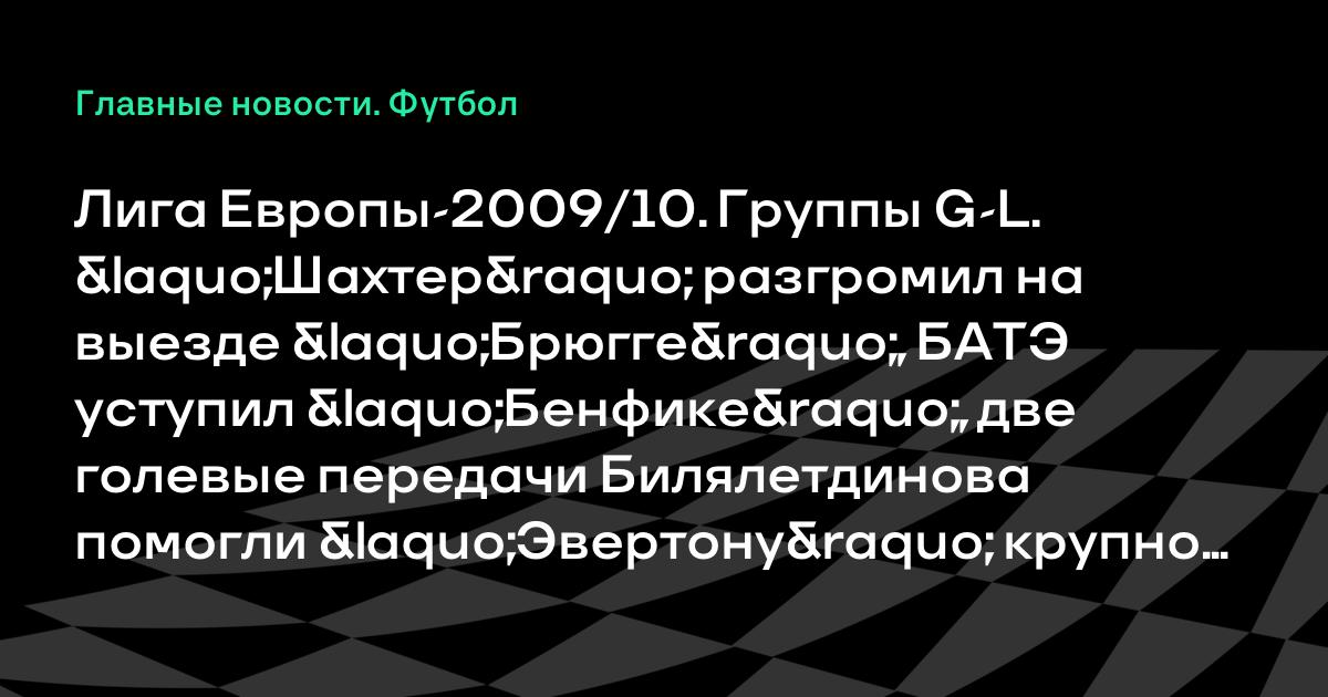 Лига Европы-2009/10. Группы G-L. «Шахтер» разгромил на выезде «Брюгге», БАТЭ уступил «Бенфике», две голевые передачи Билялетдинова помогли «Эвертону» крупно обыграть АЕК и другие результаты