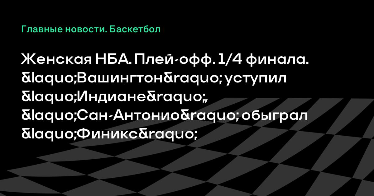 Женская НБА. Плей-офф. 1/4 финала. «Вашингтон» уступил «Индиане», «Сан-Антонио» обыграл «Финикс»