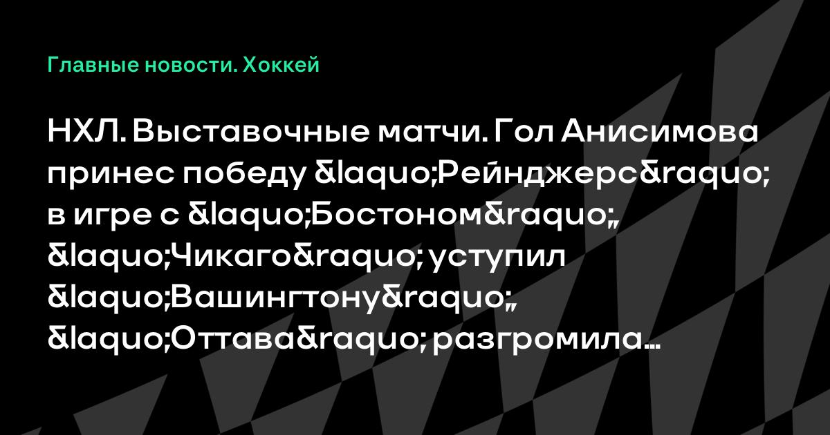 НХЛ. Выставочные матчи. Гол Анисимова принес победу «Рейнджерс» в игре с «Бостоном», «Чикаго» уступил «Вашингтону», «Оттава» разгромила «Монреаль» и другие результаты