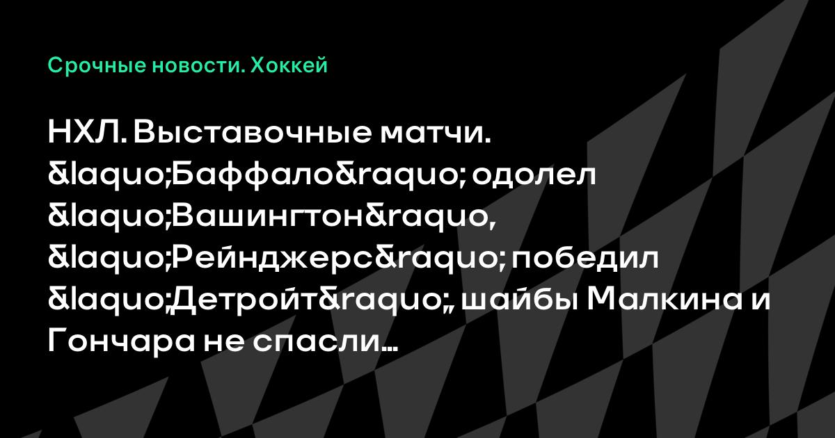 НХЛ. Выставочные матчи. «Баффало» одолел «Вашингтон», «Рейнджерс» победил «Детройт», шайбы Малкина и Гончара не спасли «Питтсбург» от поражения в игре с «Монреалем» и другие результаты