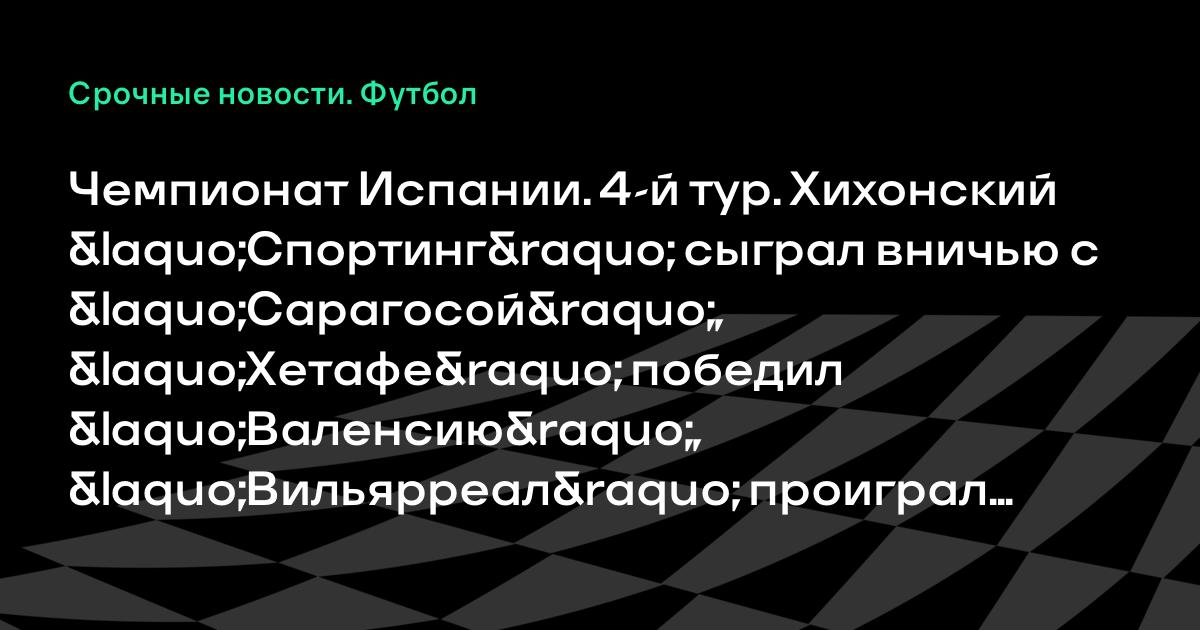 Чемпионат Испании. 4-й тур. Хихонский «Спортинг» сыграл вничью с «Сарагосой», «Хетафе» победил «Валенсию», «Вильярреал» проиграл «Реалу» и другие результаты
