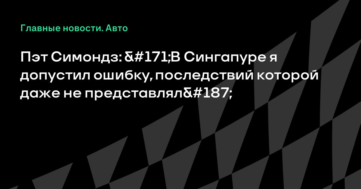 Пэт Симондз: «В Сингапуре я допустил ошибку, последствий которой даже не представлял»