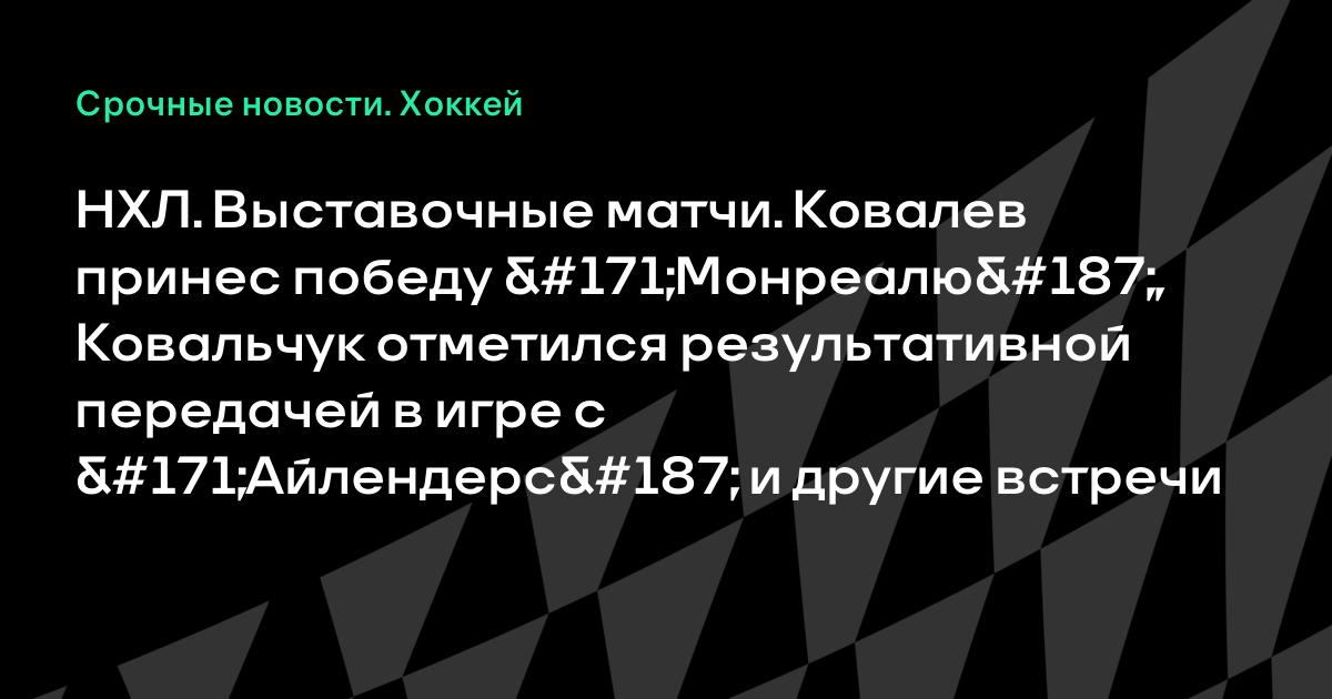 НХЛ. Выставочные матчи. Ковалев принес победу «Монреалю», Ковальчук отметился результативной передачей в игре с «Айлендерс» и другие встречи