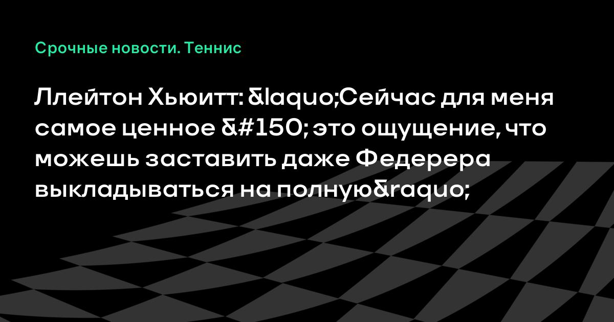 «Сейчас для меня самое ценное это то ощущение, которое получаешь, выходя на корт против такого игрока, как Роджер Федерер, и понимаешь, что заставляешь его выкладываться на полную. Это и есть моя нынешняя мотивация», цитирует Хьюитта Eurosport.