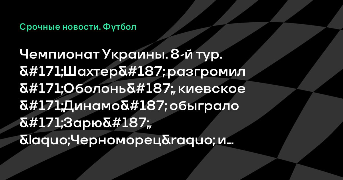 Чемпионат Украины. 8-й тур. «Шахтер» разгромил «Оболонь», киевское «Динамо» обыграло «Зарю», «Черноморец» и «Карпаты» разошлись миром и другие результаты