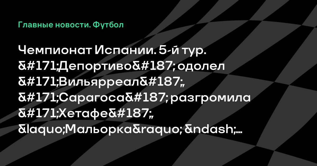 Чемпионат Испании. 5-й тур. «Депортиво» одолел «Вильярреал», «Сарагоса» разгромила «Хетафе», «Мальорка» – «Вальядолид» и другие результаты