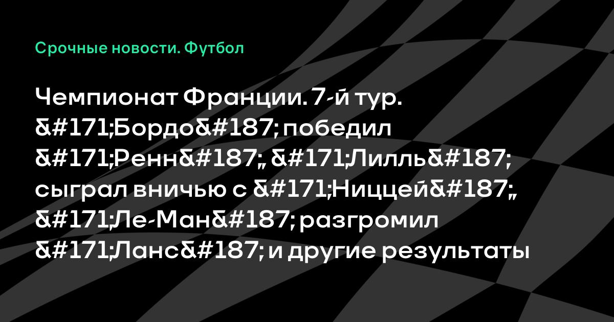 Чемпионат Франции. 7-й тур. «Бордо» победил «Ренн», «Лилль» сыграл вничью с «Ниццей», «Ле-Ман» разгромил «Ланс» и другие результаты