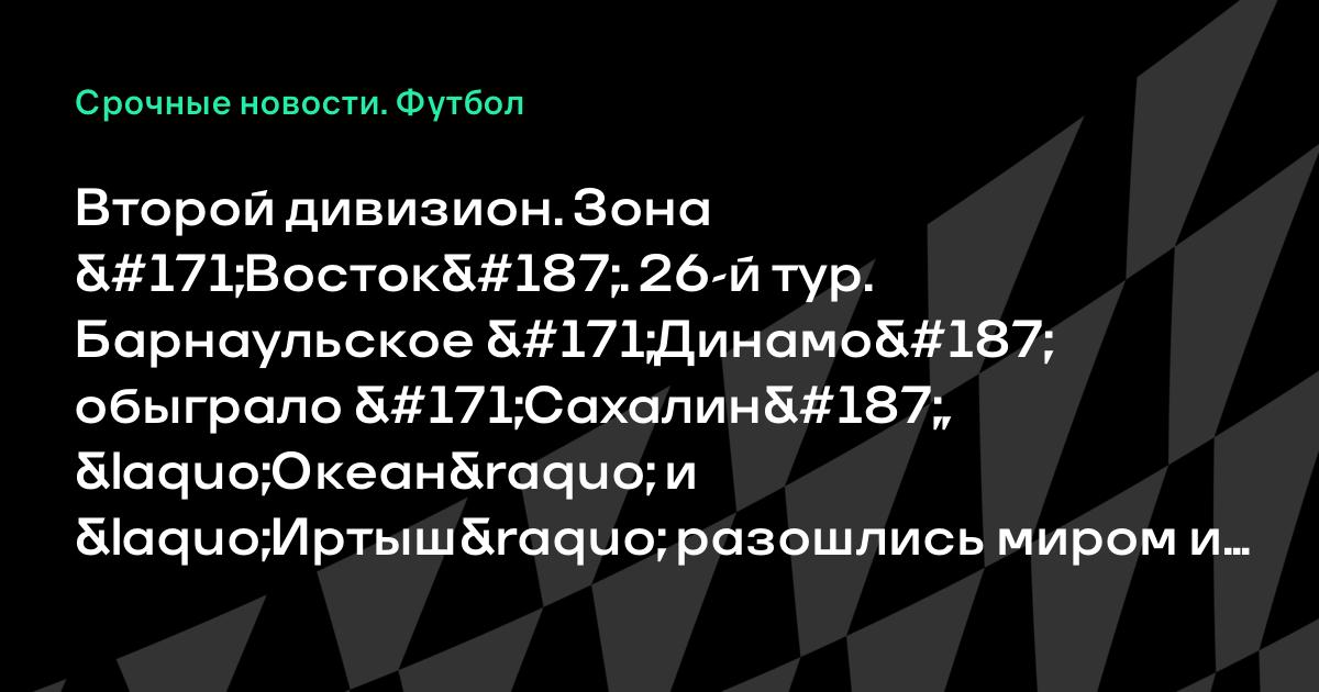 Второй дивизион. Зона «Восток». 26-й тур. Барнаульское «Динамо» обыграло «Сахалин», «Океан» и «Иртыш» разошлись миром и другие матчи