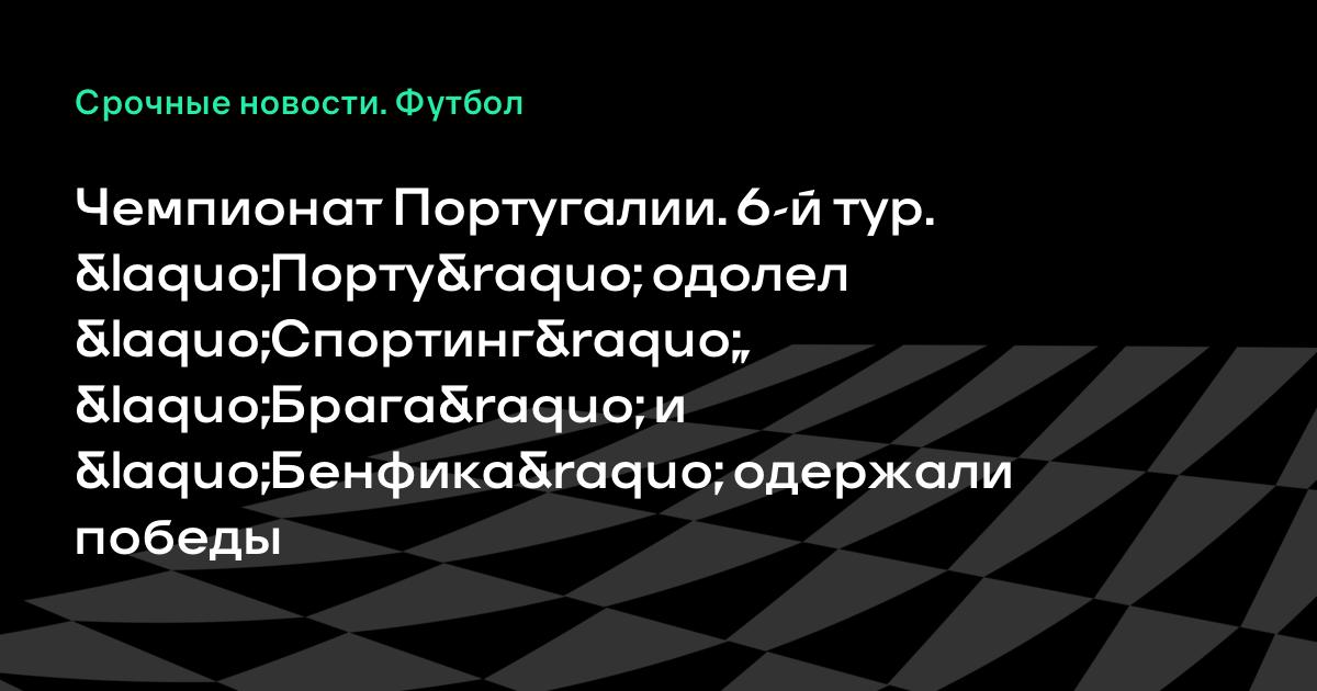 Чемпионат Португалии. 6-й тур. «Порту» одолел «Спортинг», «Брага» и «Бенфика» одержали победы