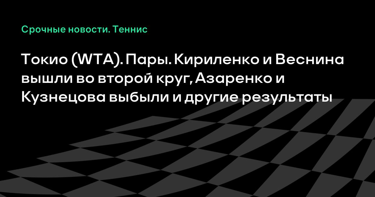 Токио (WTA). Пары. Кириленко и Веснина вышли во второй круг, Азаренко и Кузнецова выбыли и другие результаты