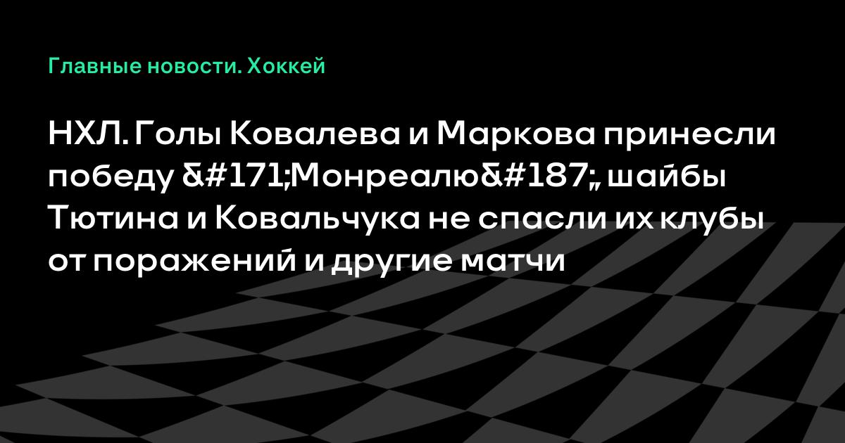 НХЛ. Голы Ковалева и Маркова принесли победу «Монреалю», шайбы Тютина и Ковальчука не спасли их клубы от поражений и другие матчи
