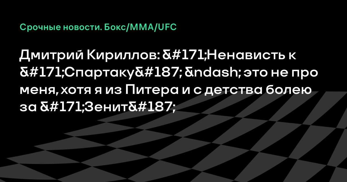 Дмитрий Кириллов: «Ненависть к «Спартаку» – это не про меня, хотя я из Питера и с детства болею за «Зенит»