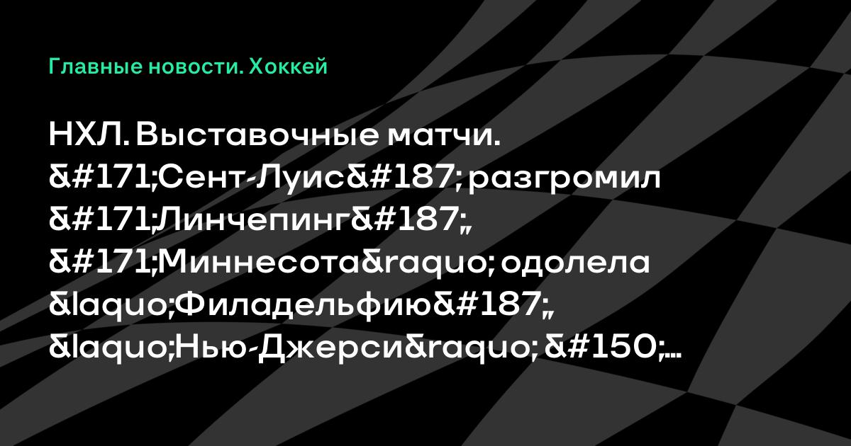 НХЛ. Выставочные матчи. «Сент-Луис» разгромил «Линчепинг», «Миннесота» одолела «Филадельфию», «Нью-Джерси» «Айлендерс»