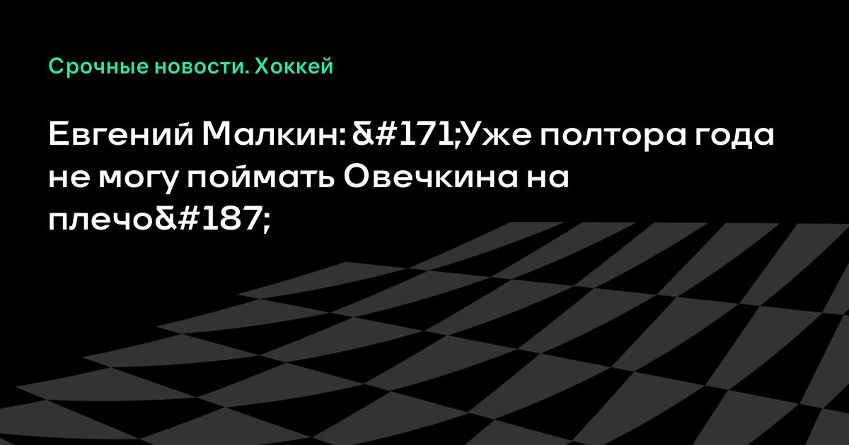 Евгений Малкин: «Уже полтора года не могу поймать Овечкина на плечо»