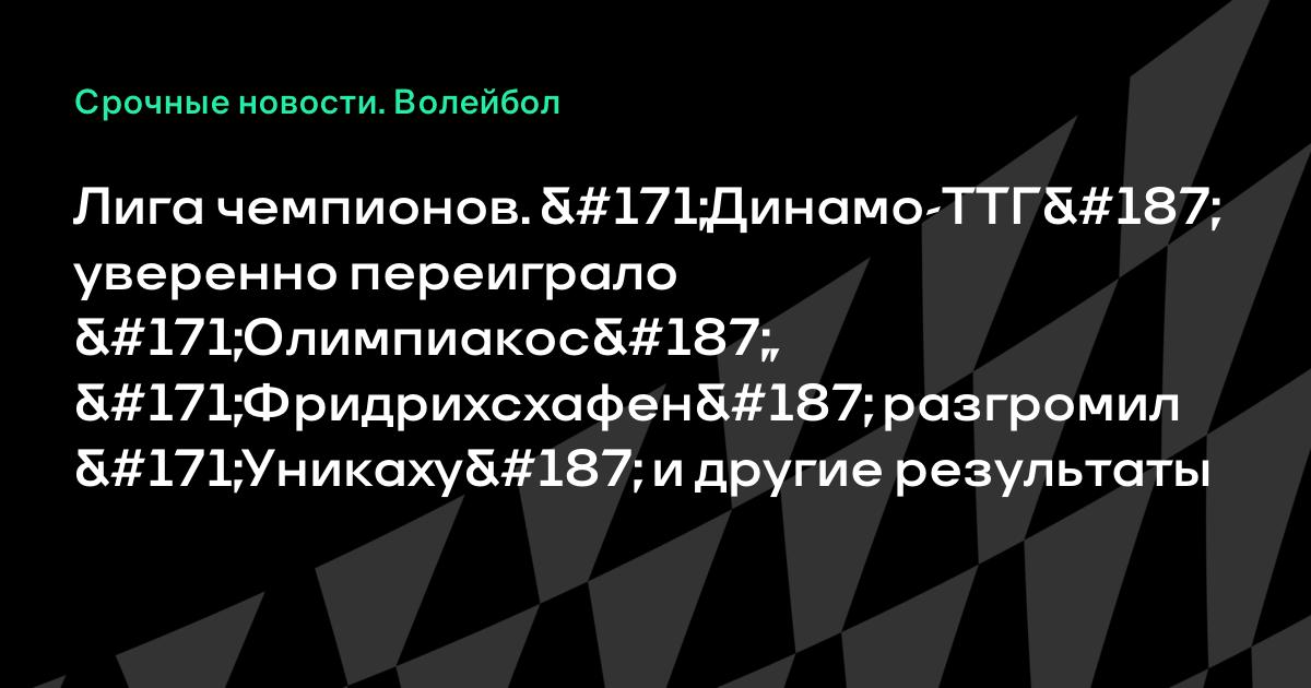 Лига чемпионов. «Динамо-ТТГ» уверенно переиграло «Олимпиакос», «Фридрихсхафен» разгромил «Уникаху» и другие результаты