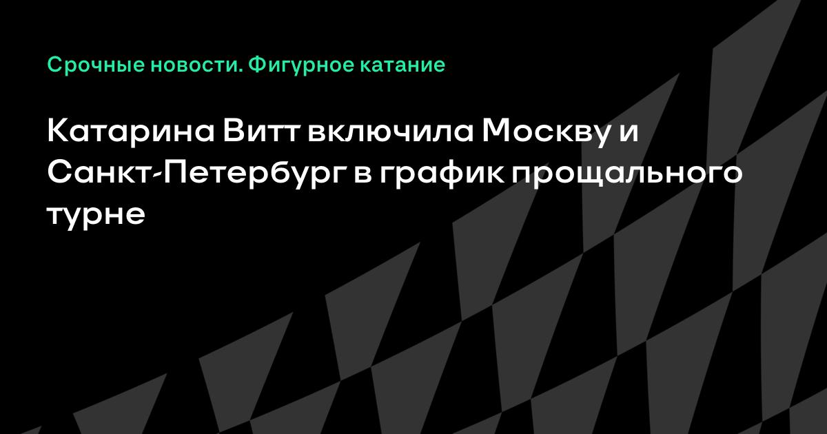 Москва и Санкт-Петербург включены в график прощального турне легендарной немецкой фигуристки, двукратной чемпионки Олимпийских игр Катарины Витт. Оно состоится в следующем году. Об этом сообщила в Берлине сама 41-летняя четырехкратная чемпионка мира и шестикратная чемпионка Европы.