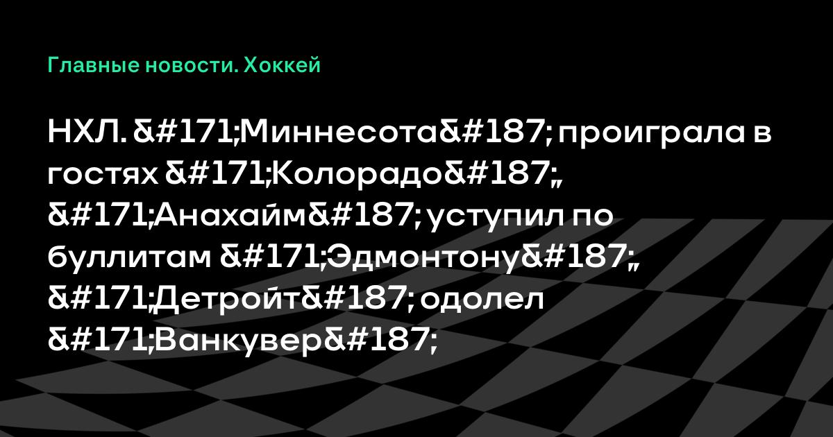 НХЛ. «Миннесота» проиграла в гостях «Колорадо», «Анахайм» уступил по буллитам «Эдмонтону», «Детройт» одолел «Ванкувер»