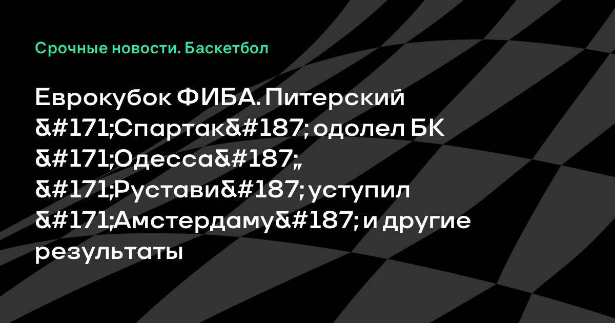 Еврокубок ФИБА. Питерский «Спартак» одолел БК «Одесса», «Рустави» уступил «Амстердаму» и другие результаты