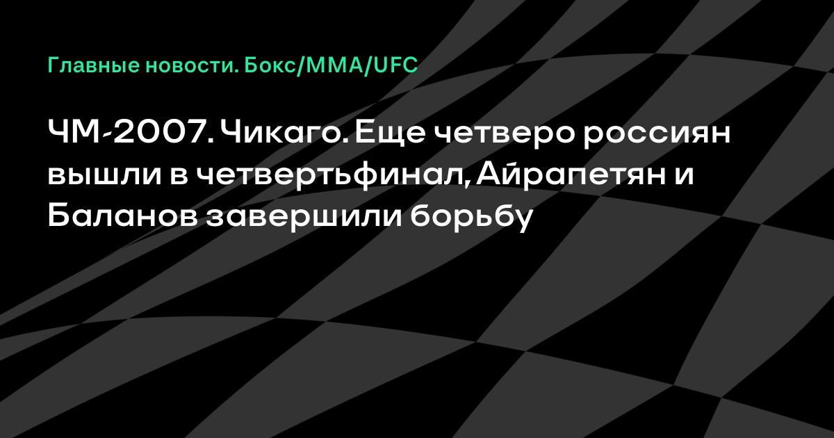 ЧМ-2007. Чикаго. Еще четверо россиян вышли в четвертьфинал, Айрапетян и Баланов завершили борьбу
