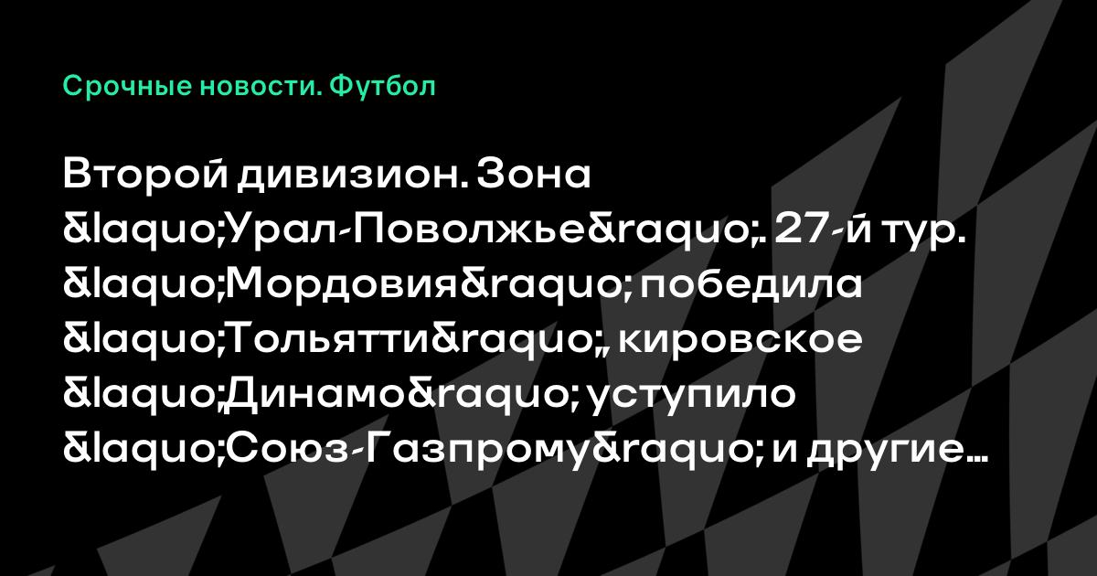Второй дивизион. Зона «Урал-Поволжье». 27-й тур. «Мордовия» победила «Тольятти», кировское «Динамо» уступило «Союз-Газпрому» и другие результаты