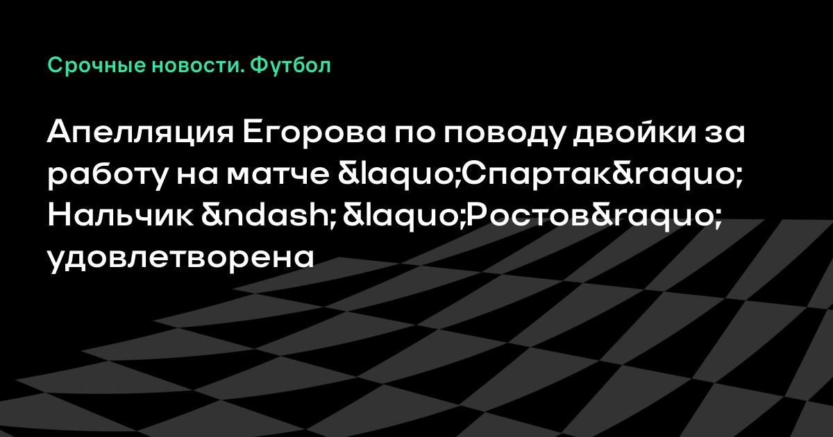 Апелляция Егорова по поводу двойки за работу на матче «Спартак» Нальчик – «Ростов» удовлетворена