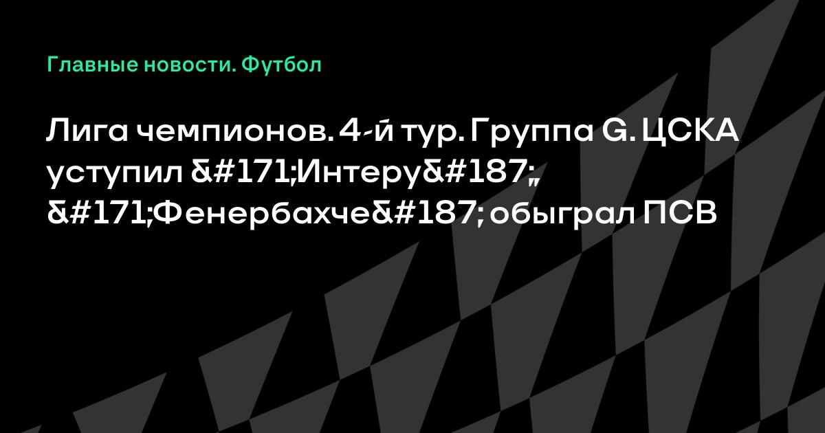Лига чемпионов. 4-й тур. Группа G. ЦСКА уступил «Интеру», «Фенербахче» обыграл ПСВ