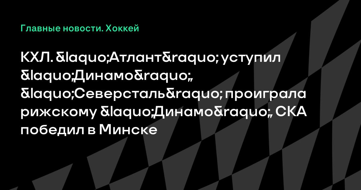 КХЛ. «Атлант» уступил «Динамо», «Северсталь» проиграла рижскому «Динамо», СКА победил в Минске