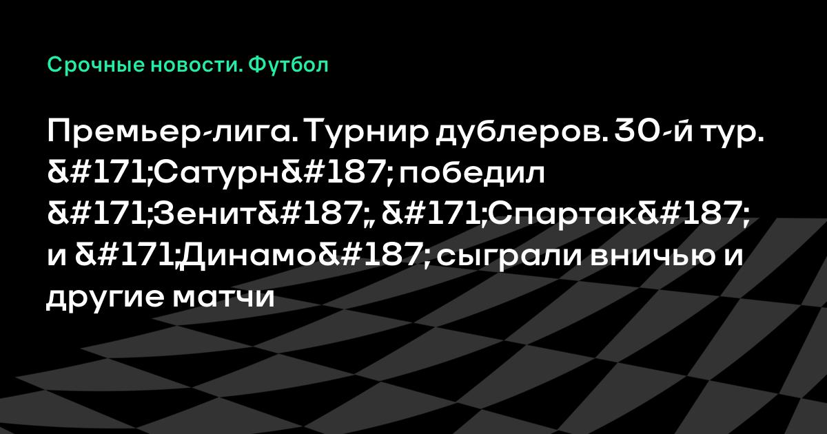 Премьер-лига. Турнир дублеров. 30-й тур. «Сатурн» победил «Зенит», «Спартак» и «Динамо» сыграли вничью и другие матчи