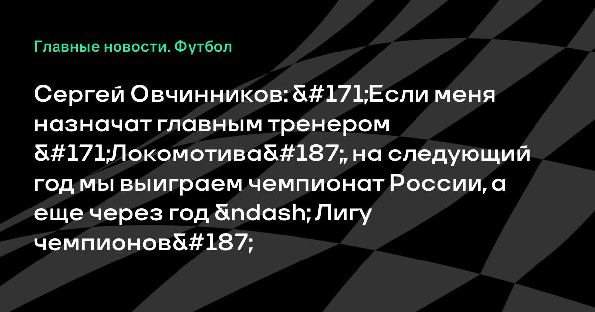 В случае назначения на пост главного тренера столичного «Локомотива» Сергей Овчинников планирует выиграть за два года чемпионат России по футболу и Лигу чемпионов.