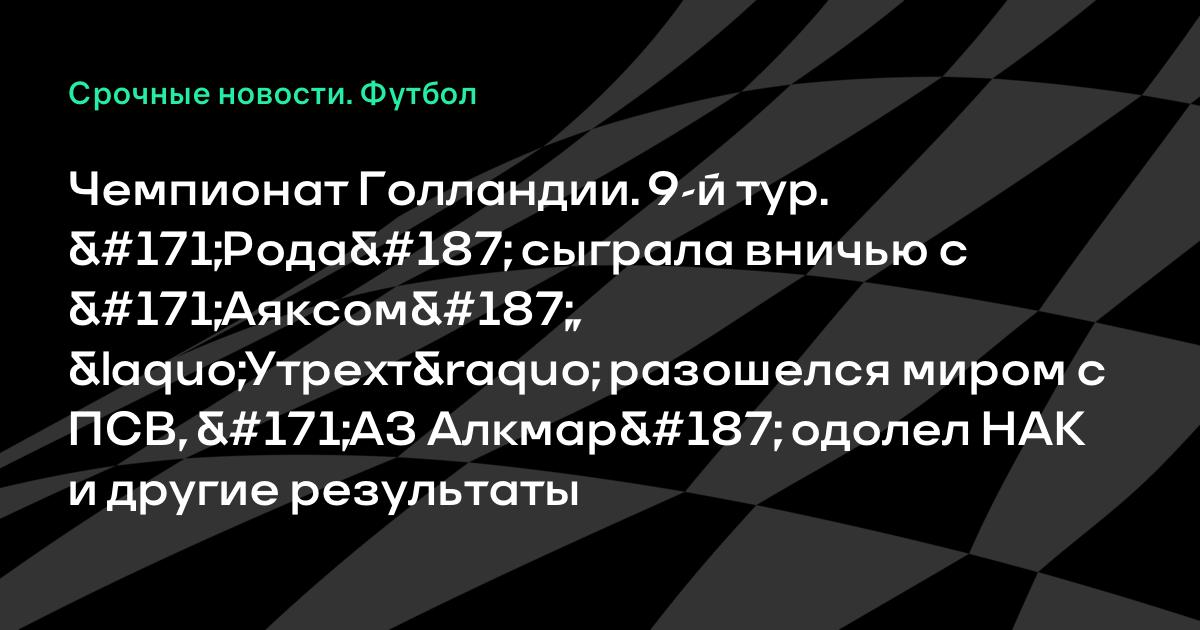 Чемпионат Голландии. 9-й тур. «Рода» сыграла вничью с «Аяксом», «Утрехт» разошелся миром с ПСВ, «АЗ Алкмар» одолел НАК и другие результаты