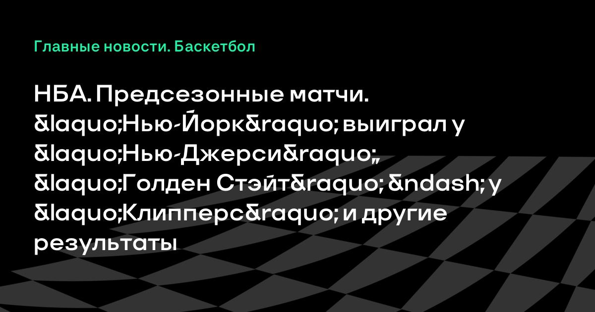 НБА. Предсезонные матчи. «Нью-Йорк» выиграл у «Нью-Джерси», «Голден Стэйт» – у «Клипперс» и другие результаты